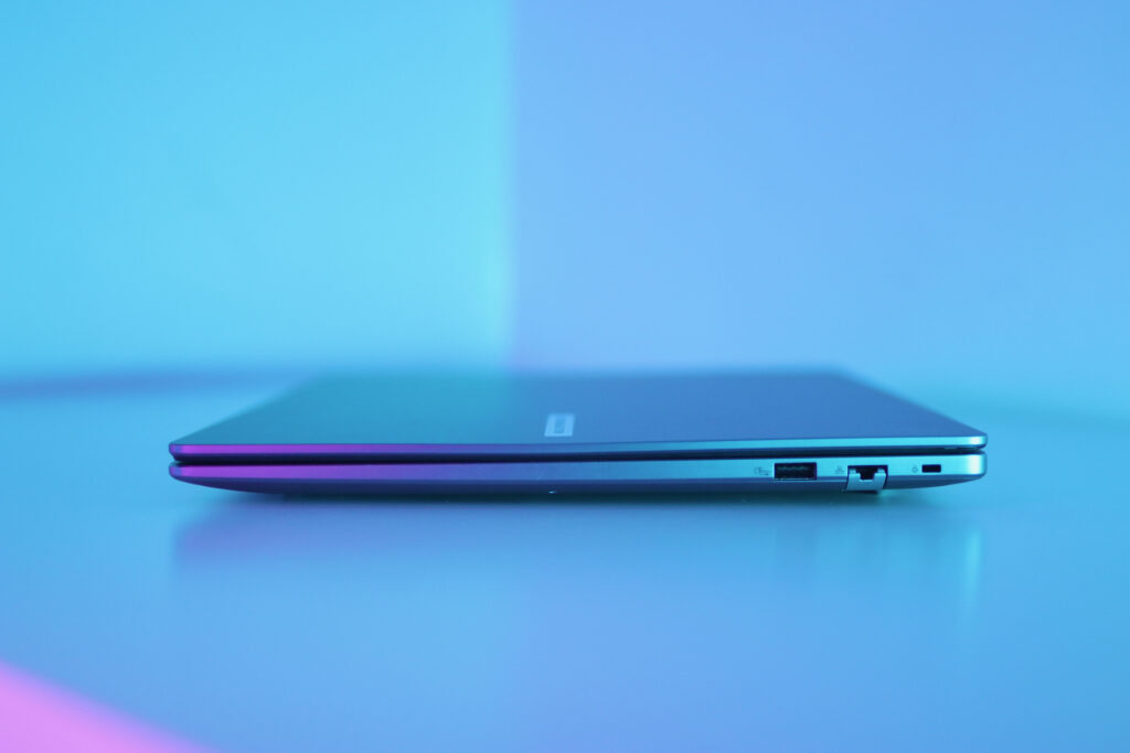 Connectivity covers all bases: two USB Type-A ports, two USB Type-C ports (with display and power delivery), HDMI 2.1, audio jack, and RJ45 Gigabit Ethernet for reliable wired connections. Wi-Fi 6 and Bluetooth 5.4 handle wireless needs. The 63WHrs battery with 65W Type-C charging gets you through full workdays.