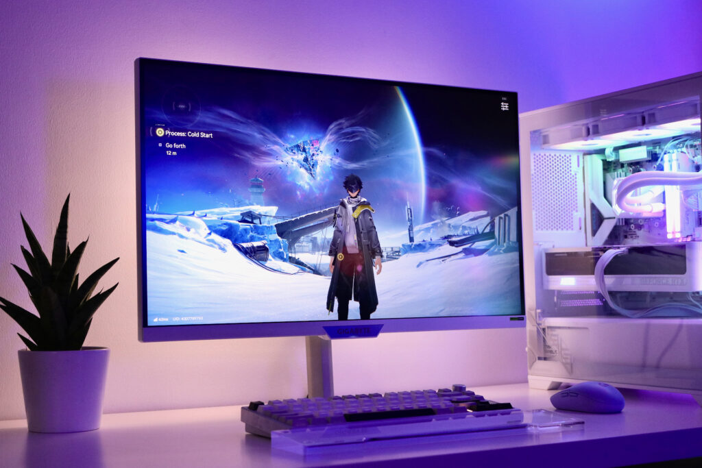 The Gigabyte M27U ICE sports an IPS panel that covers 95% of the DCI-P3 color space, fast 1ms response time, and FreeSync Premium and G-Sync compatible. Colors look vibrant without being oversaturated, and viewing angles are excellent.